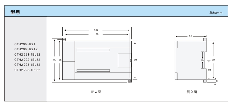 數(shù)字量輸出模塊, 8點(diǎn)晶體管輸出,24VDC,0.5A(輸出保護(hù))CTH2 222-1BF32