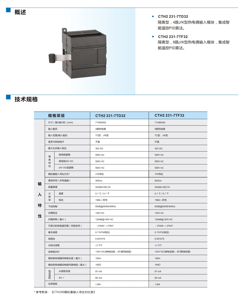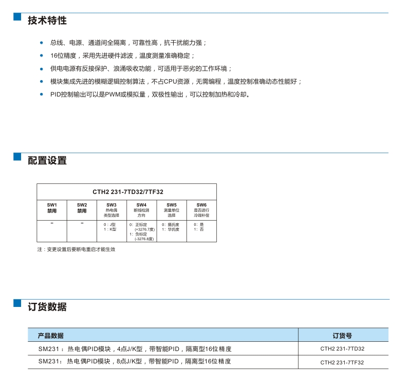 SM 231 熱電偶PID模塊 | 熱電偶PID模塊,4點(diǎn)J/K型,帶智能PID,隔離型16位精度 | CTH2 231-7TD32 |
