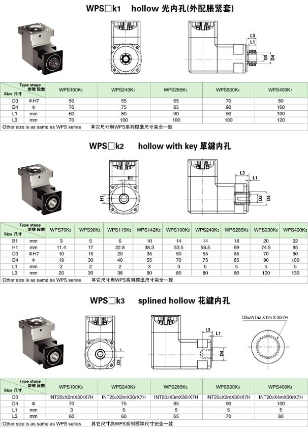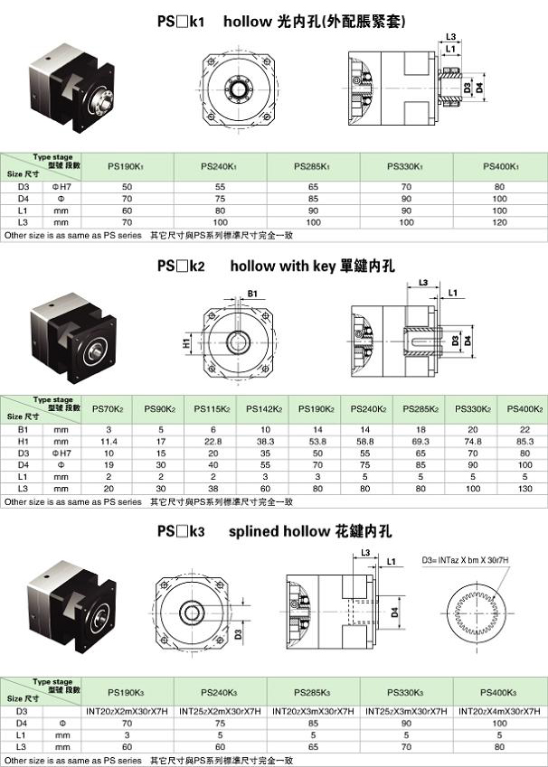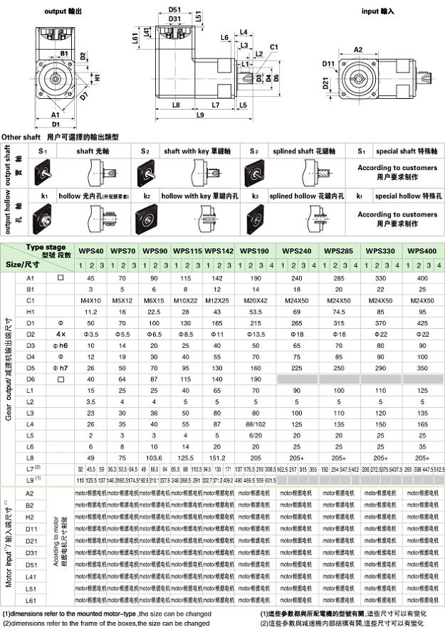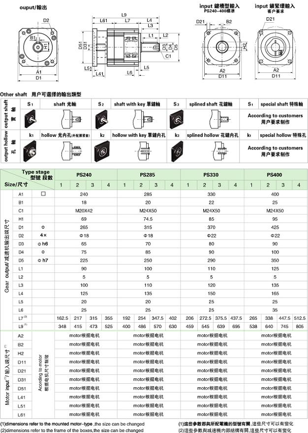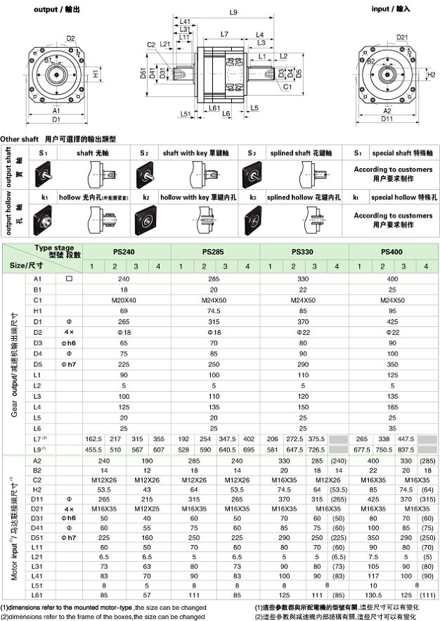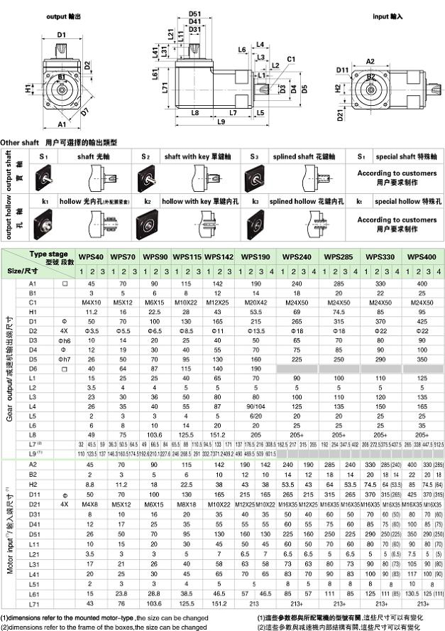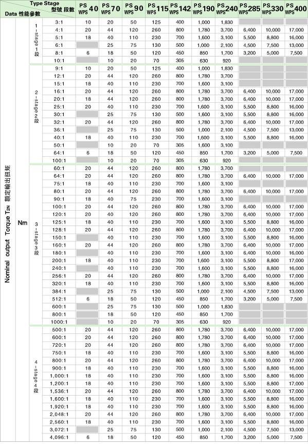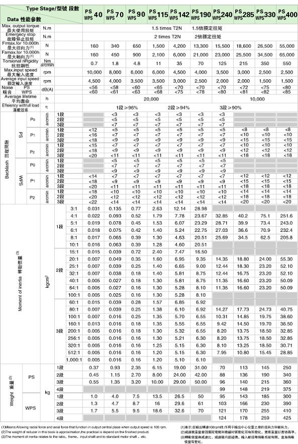 PS/WPS 系列精密行星減速機技術參數(shù)